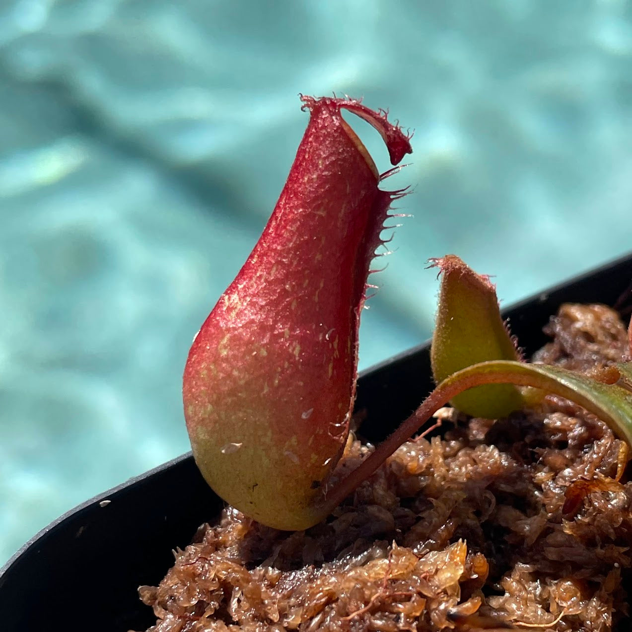 Bring a touch of the dramatic to your indoor jungle with the captivating Nepenthes 'Lady Luck,' also known as 'Bloody Mary.' This mesmerizing hybrid boasts vibrant red pitchers that add a unique flair to any windowsill or terrarium. The plant is a hybrid of Nepenthes Ampullaria x Ventricosa.